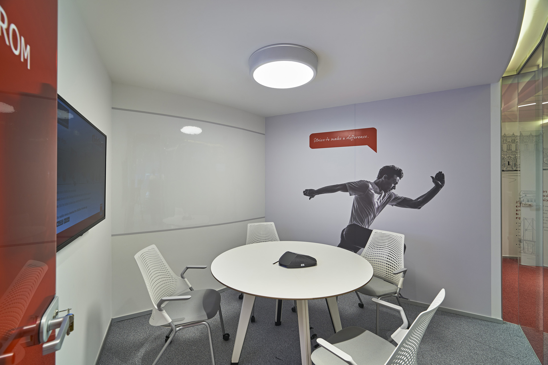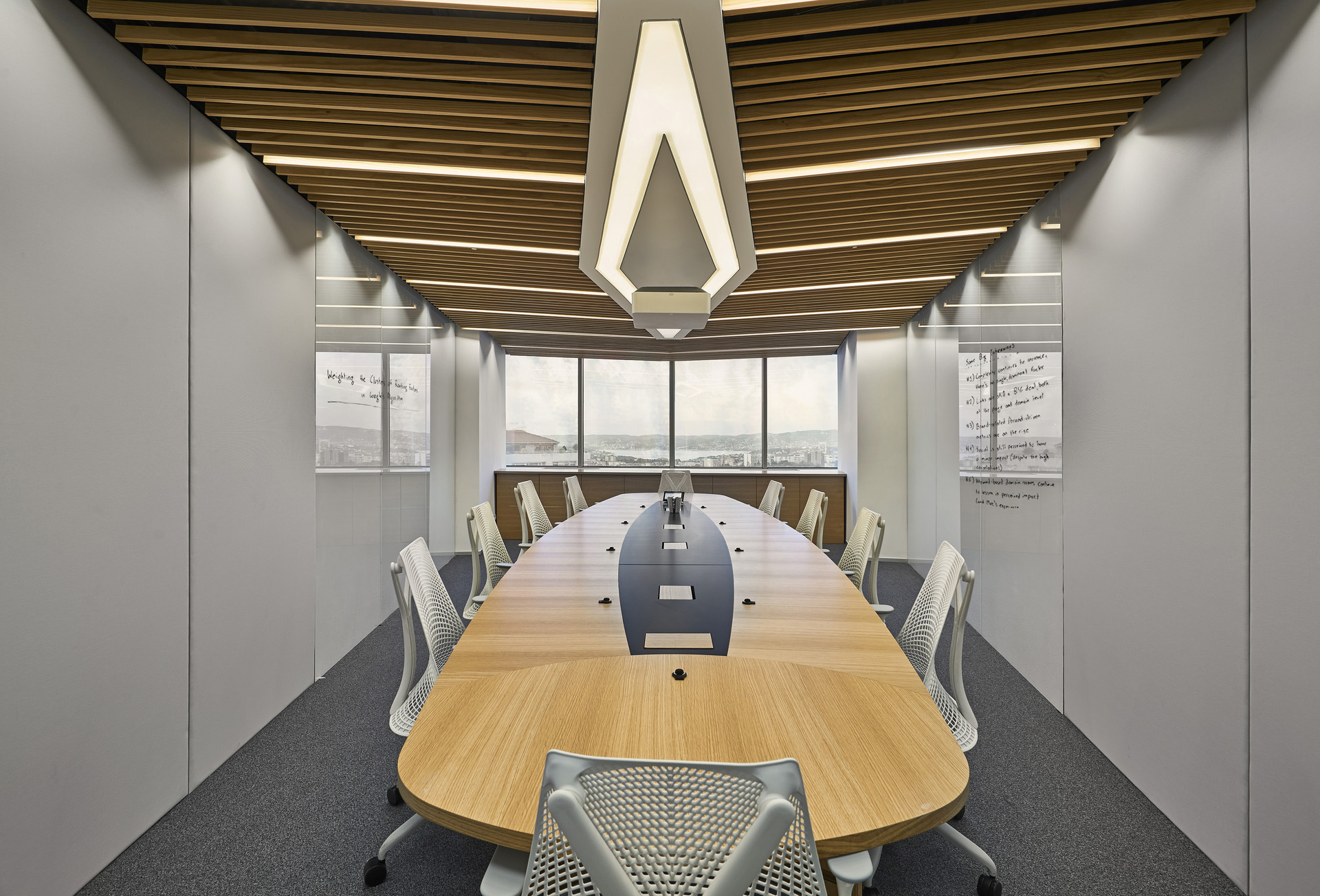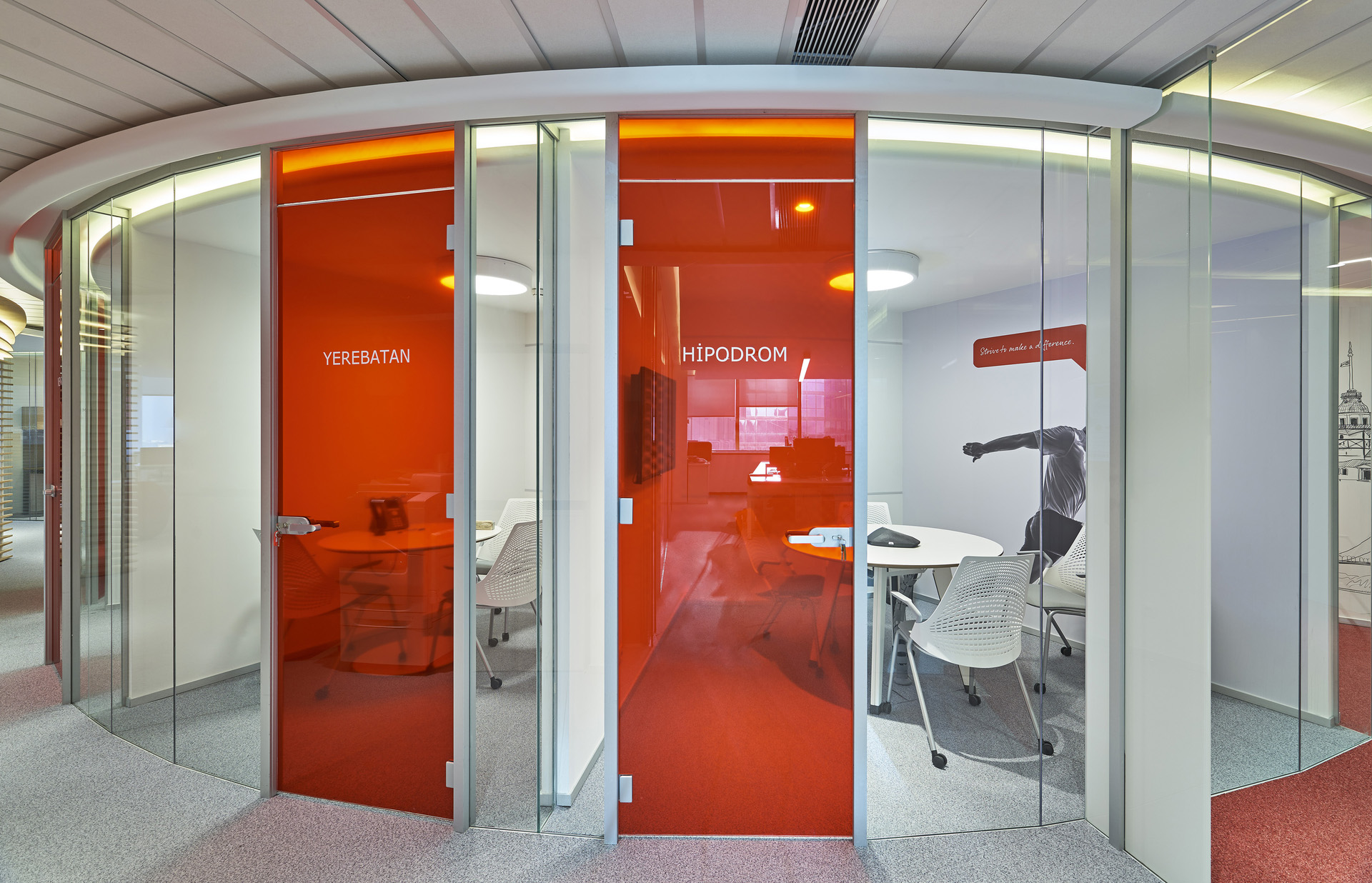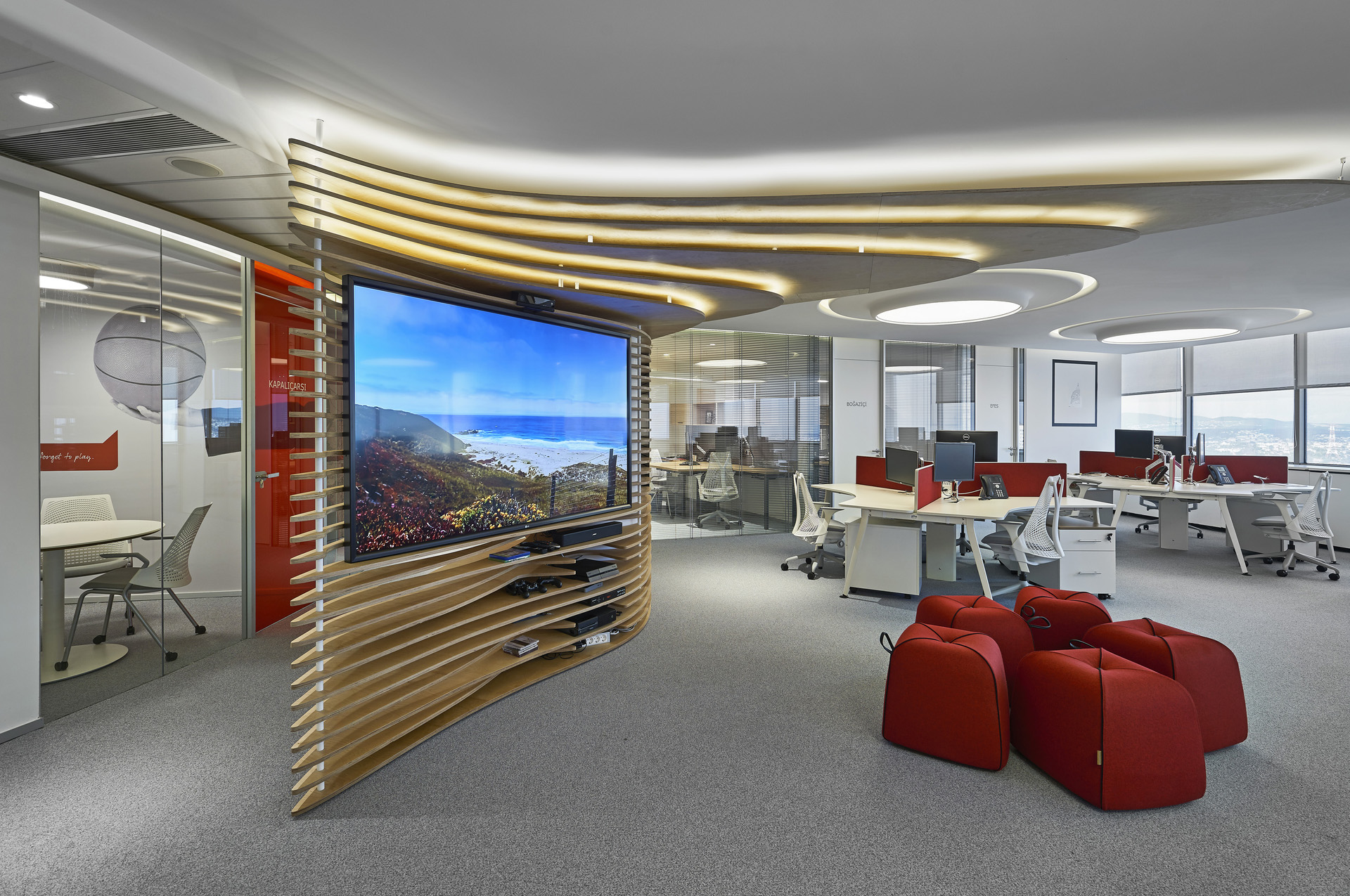 10. katta panoramik boğaz manzarasına sahip olan dairesel formdaki ofisin iç mimari projesi ve grafik tasarımı, Bain & Company için Net mimarlık tarafından tasarlanıp uygulanmıştır. Binanın dairesel geometrisini verimli kullanan etkin alanlara sahip ofis tasarımı hedeflenmiştir. Tasarım sürecine merkezden dairesel eksen oluşturulmakla başlanmış ve onu daha küçük bir dairesel eksenle ayırmakla devam etmiştir. Bu ofis tasarımı ile açık ofisler, kapalı ofisler ve toplantı odaları için dik yamuklar yaratılmıştır. Odak noktası ise insanları hem iş hem de sosyal amaçlar için bir araya getirecek çok amaçlı intekaktif bir birim tasarlamak olmuştur. Bu alan, ofisin hem sirkülasyon alanına hem de ofis alanlarına bakan ortak alanında yer almıştır. Özel ofis mobilyası tasarımı, konferans salonu ve toplantı odaları tasarımlarıyla tamamı ile fonksiyonel bir ofis tasarımı yapılmıştır. Katmanlı ham ahşap ünite, tüm donanımları gizlerken aynı zamanda geçirgen bir bölücü olarak kullanılmıştır. Organik akışkanlık dairesel bina formundaki pahlı köşe tavan tasarımı sayesinde homojen ışık yansıması yaratılmıştır. Bu sayede yayılan ışık sayesinde alçak tavandan kaynaklanan olumsuz etkiler ortadan kaldırılmıştır. Doğal ışığın merkeze geçişi için cepheye paralel dairesel aks oluşturulmuştur. Doğal ışık dairesel eksen üzerinden geçerken, saydam malzeme sayesinde ışığı ayrıca toplamıştır.