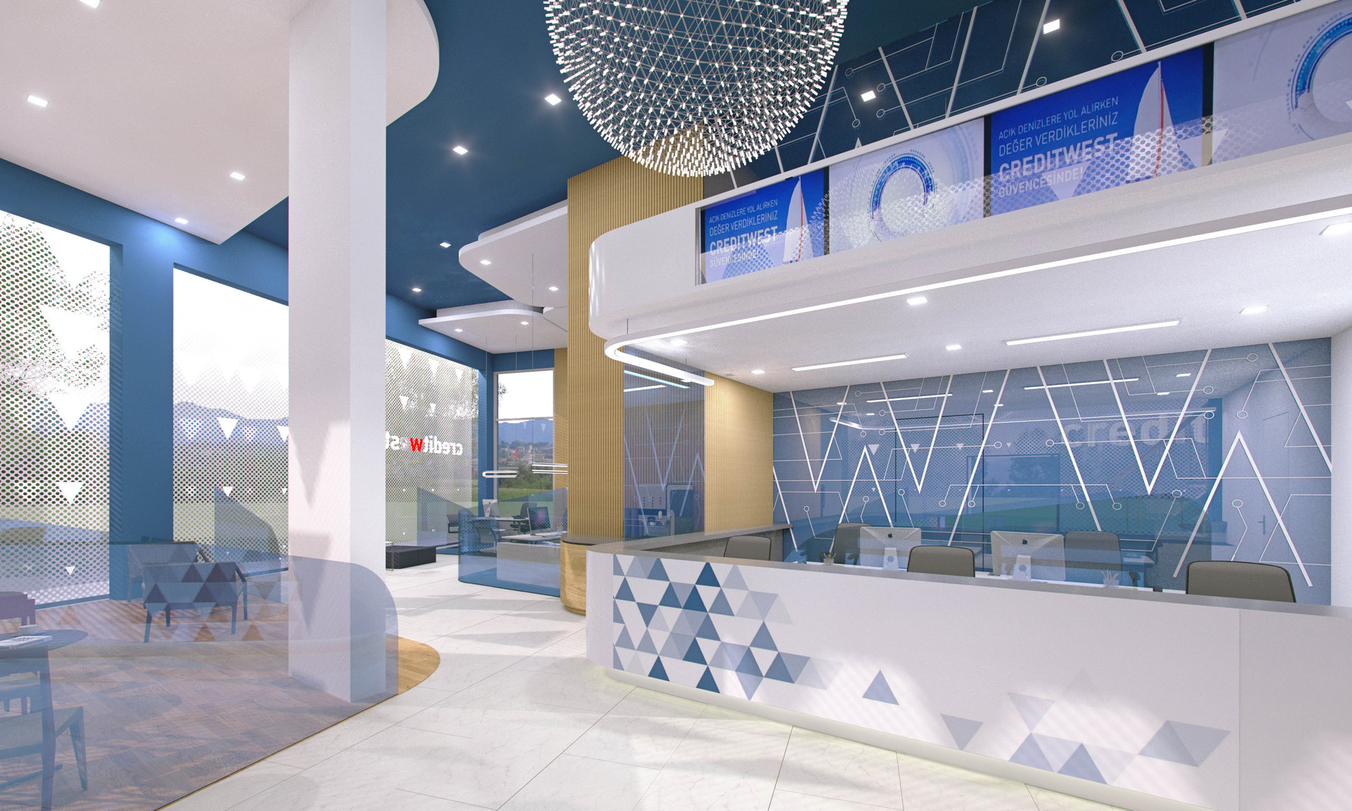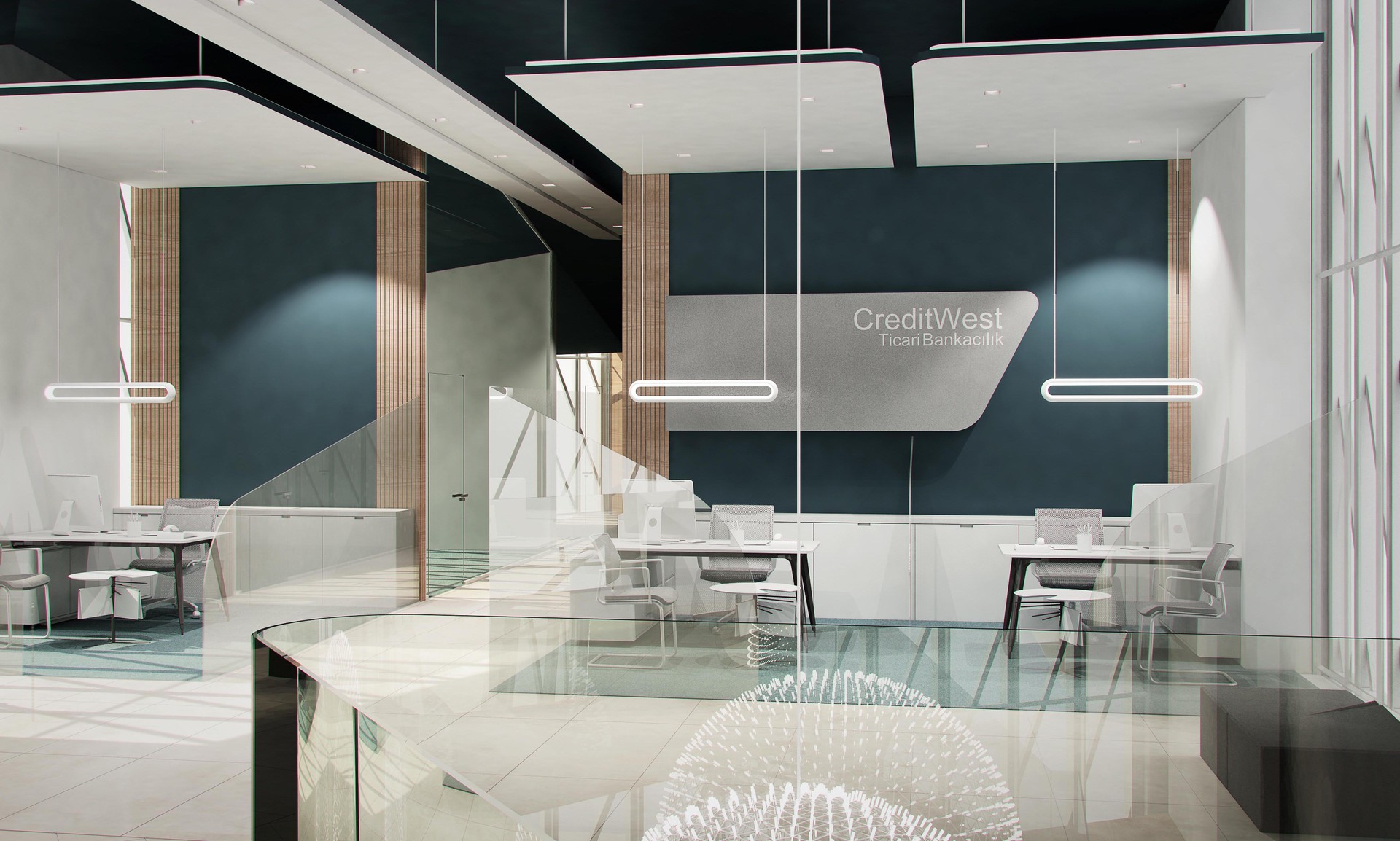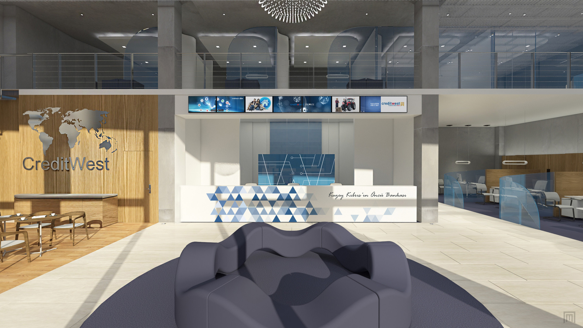 Creditwest Bank’ın Kıbrıs’taki Alsancak, Dereli, Lefkoşa, Gönyeli Şubelerinin, Bilgi İşlem Merkezi ve Genel Merkez’in iç mekan tasarımları Net Mimarlık tarafından yapılmıştır. Tasarım yapılırken Creditwest’în kurumsal kimliği göz önünde bulundurulmuş, marka kimliği sıcak renklerle harmanlanmış ve modern, çalışması keyifli, aydınlık mekânlar yaratılmıştır.