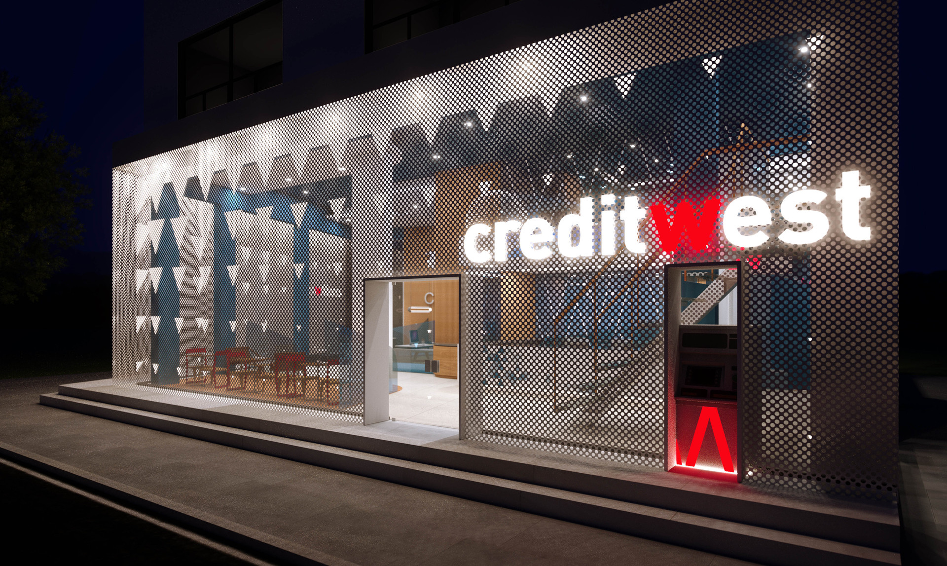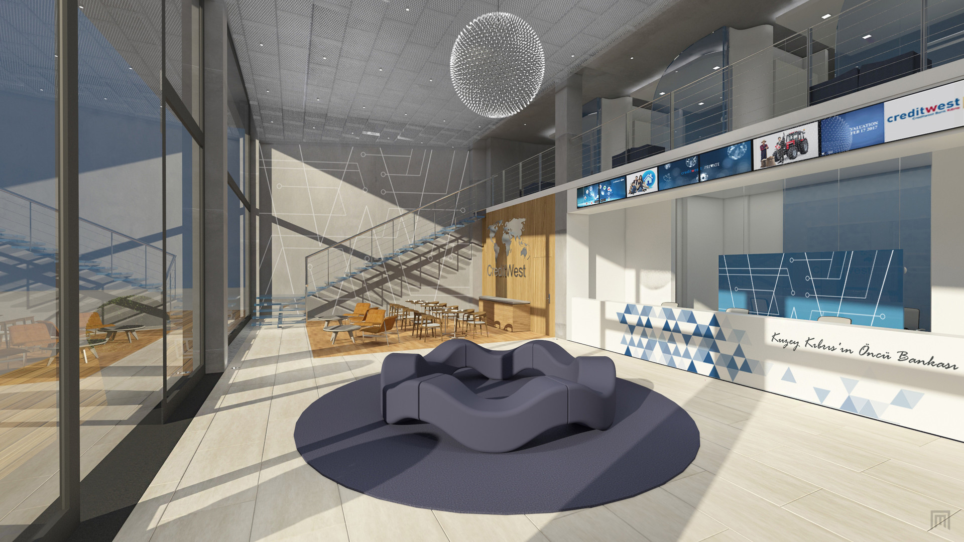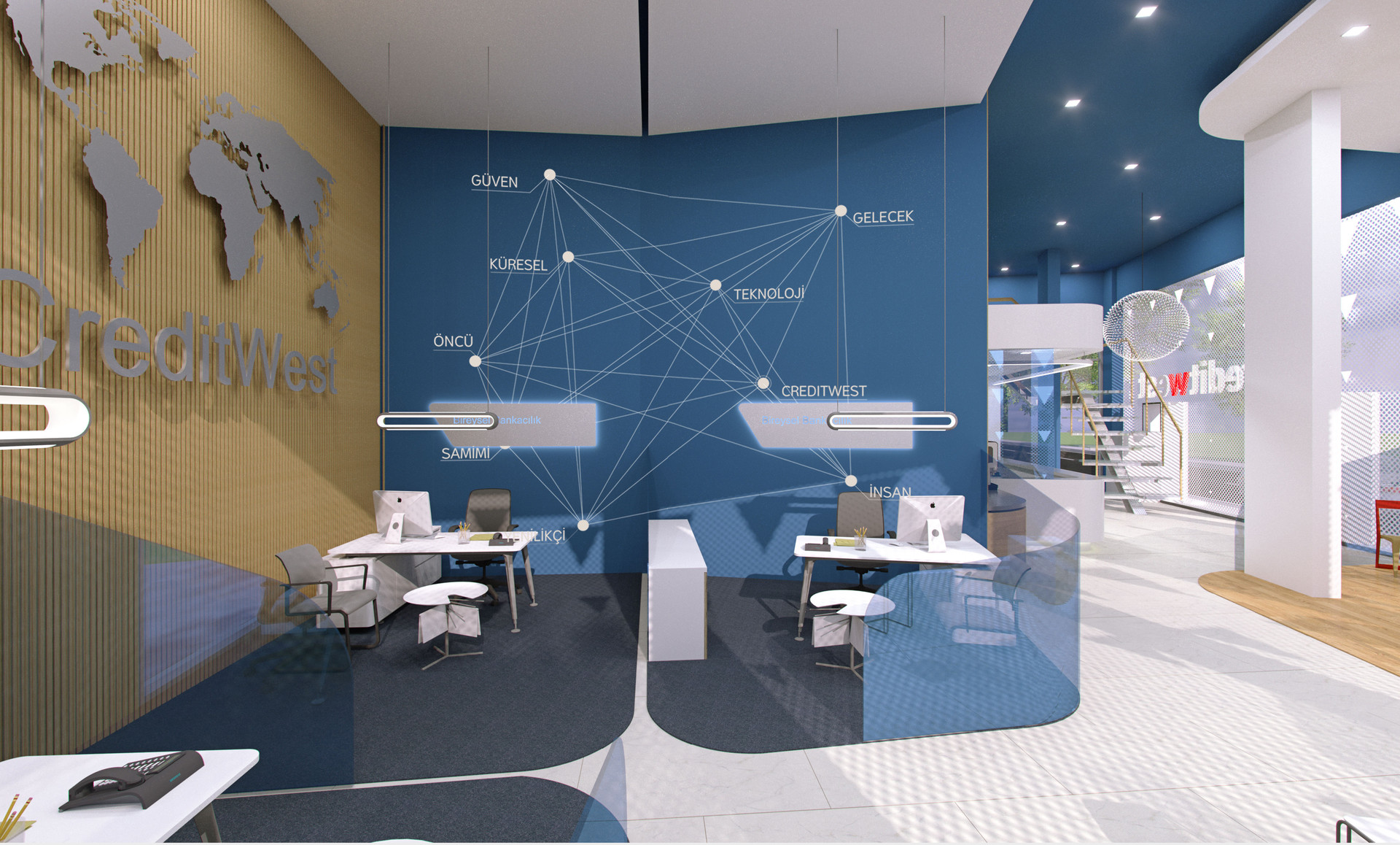 Creditwest Bank’ın Kıbrıs’taki Alsancak, Dereli, Lefkoşa, Gönyeli Şubelerinin, Bilgi İşlem Merkezi ve Genel Merkez’in iç mekan tasarımları Net Mimarlık tarafından yapılmıştır. Tasarım yapılırken Creditwest’în kurumsal kimliği göz önünde bulundurulmuş, marka kimliği sıcak renklerle harmanlanmış ve modern, çalışması keyifli, aydınlık mekânlar yaratılmıştır.