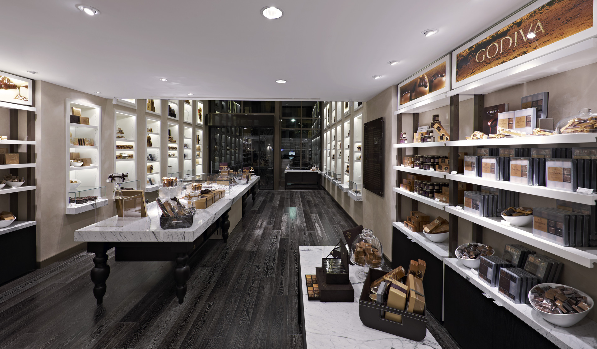 Godiva Global tarafından kavram projesi hazırlanan Godiva mağazalarının Türkiye’de çeşitli illerde uygulama projesi hazırlanması ve projenin uygulanması Net Mimarlık tarafından gerçekleştirilmiştir. İngiltere’de açılacak olan mağazalar için mobilya teminleri de Godiva projeleri kapsamında yapılmıştır. Nişantaşı bu uluslararası markanın Türkiye'deki ilk mağazasıdır. 185 m2 alan 3 farklı düzeye ayrılmaktadır. Giriş alanındaki yüksek tavan ve eğrisel merdiven mağazaya başka bir boyut katmaktadır. Malzemeler markanın zarifliğini yansıtmak için özenle seçilmiştir. Parke ve duvar seramikleri yurt dışından özel olarak getirtilmiştir. Projenin uygulaması 8 haftada tamamlanmıştır. Kurumsal konsept çok sayıda mağazada uygulanmıştır.